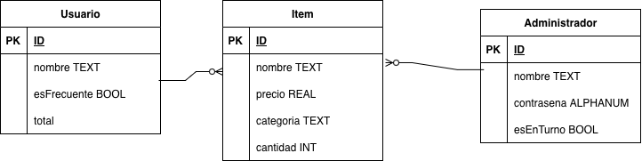 def crear_tabla(self): self.ejecutar(""" CREATE TABLE IF NOT EXISTS Item (ID INTEGER PRIMARY KEY AUTOINCREMENT, nombre TEXT UNIQUE NOT NULL, precio REAL NOT NULL, categoria TEXT, cantidad INT NOT NULL) """) self.ejecutar(""" CREATE TABLE IF NOT EXISTS Administrador( ID INTEGER PRIMARY KEY, nombre TEXT NOT NULL, contrasena TEXT NOT NULL, esenturno BOOLEAN NOT NULL DEFAULT 0 ) """) self.ejecutar(""" CREATE TABLE IF NOT EXISTS Cliente( ID INTEGER PRIMARY KEY AUTOINCREMENT, nombre TEXT NOT NULL, esfrecuente BOOLEAN NOT NULL DEFAULT 0, total REAL NOT NULL DEFAULT 0.0 ) """)Posteriormente, se crea el sistema CRUD (Create, Read, Update, Delete) de gestión de la base de datos en función de los métodos del usuario administrador o cliente.